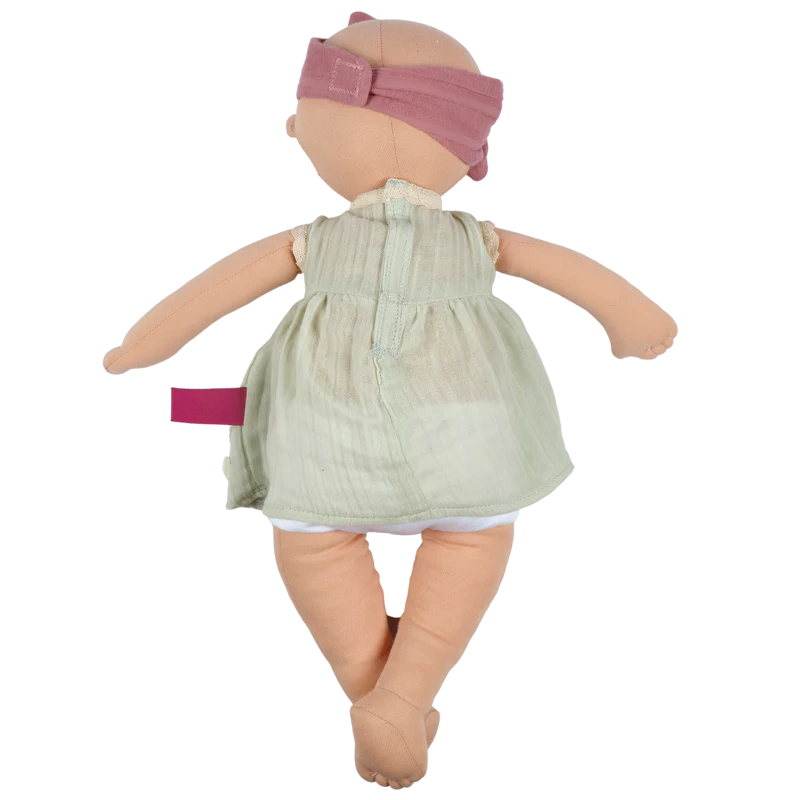 Her removable dress, nappy, and headband make her perfect for imaginative play and gentle snuggles.