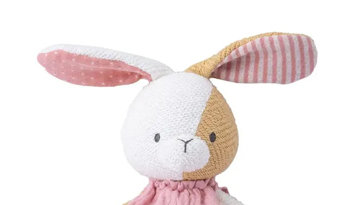 Blossom the Bunny comes dressed in removable pink dress, adding an extra touch of charm and fun to bedtime. She has large floppy ears and soft embroidered features.