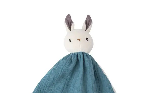 Its charming rabbit head and floppy ears are easy for tiny hands to grasp, making it both practical and comforting.