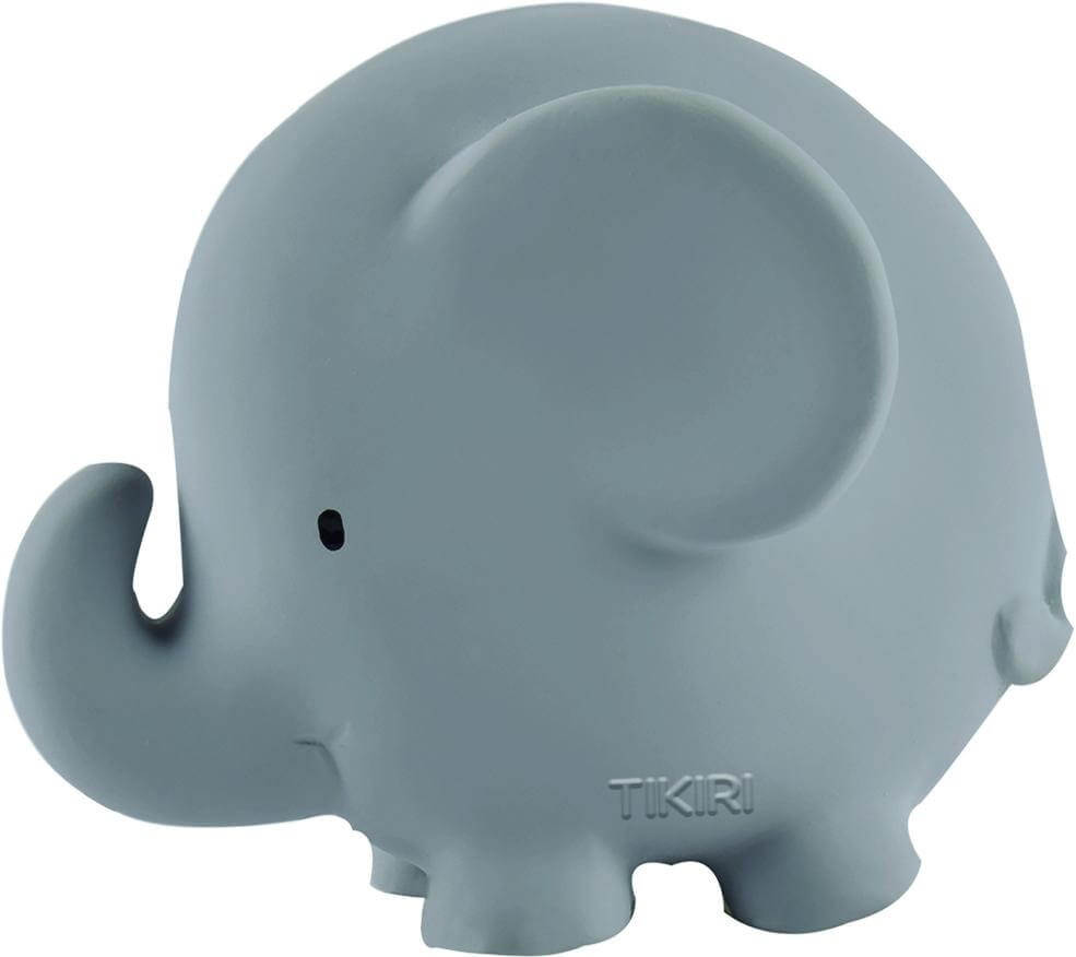 This adorable, 100% plastic-free elephant is a natural rubber baby teether, rattle, and bath companion.