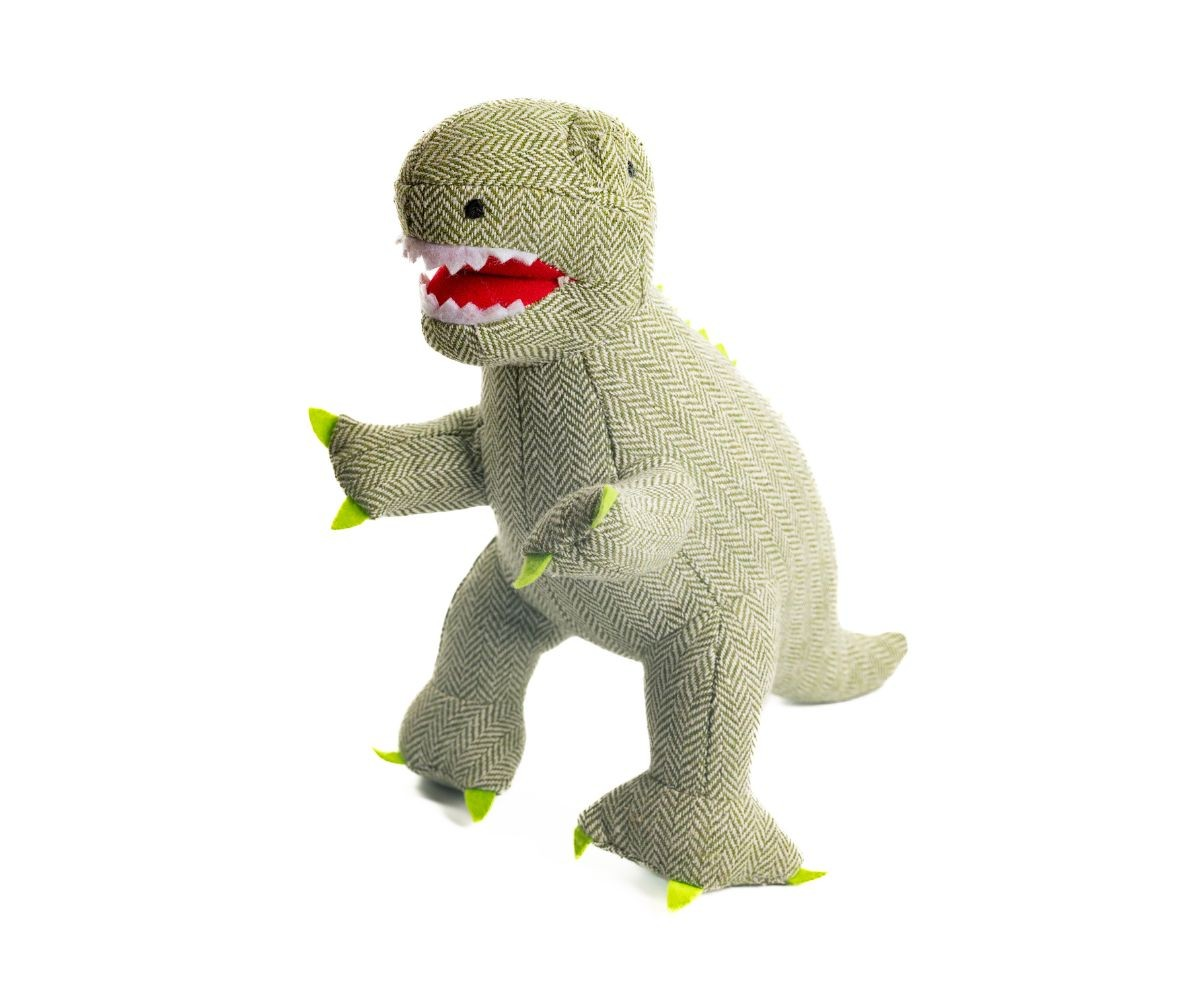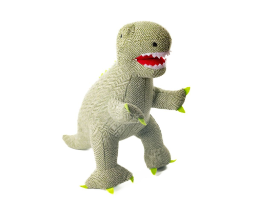 A wonderful green tweed fabric T-Rex dinosaur soft toy.