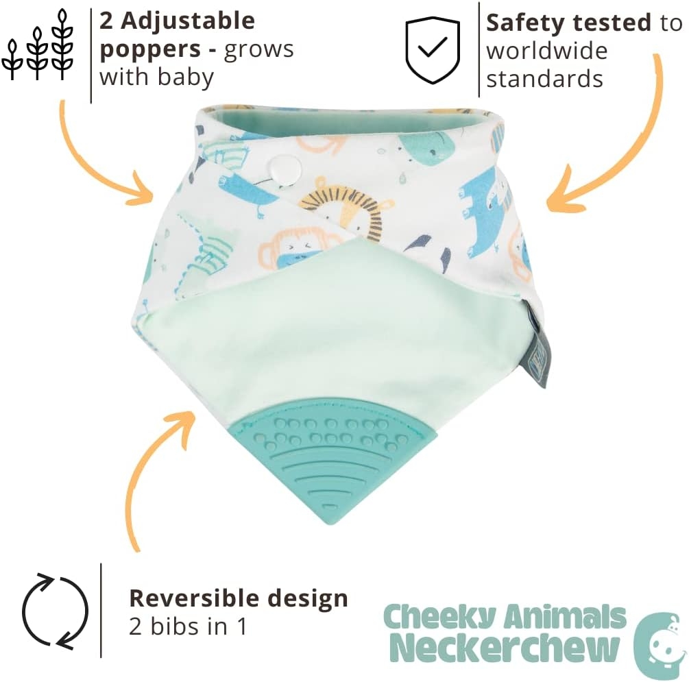 Neckerchew Teething Dribble Bib - Cheeky Animals.