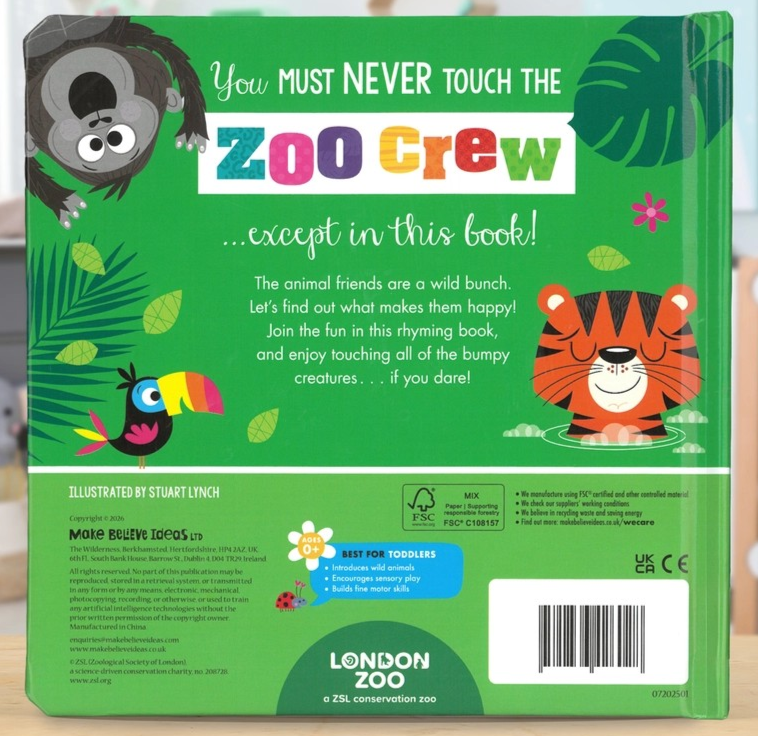 Have fun with this rhyming book, and little ones can enjoy touching all of the bumpy silicone creatures . . . if they dare!