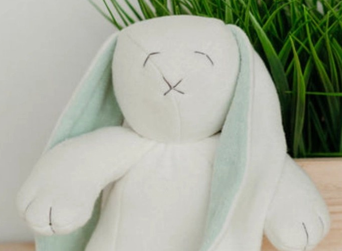 This ultra-soft bunny plush baby toy is loveingly handmade using soft organic Egyptian cotton