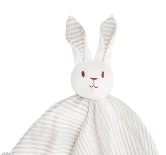 This very cute grey stripe bunny with blanket is designed as a comforter toy for snuggles and cuddles to soothe your baby.