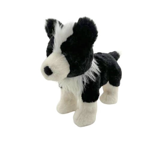 A charming black and white sheepdog puppy plush, perfect for little ones to cuddle.