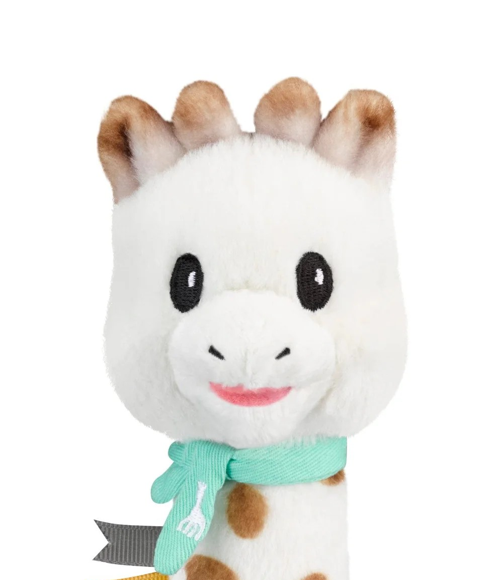 This adorable Sweet Sophie plush is a squeaky rattle toy